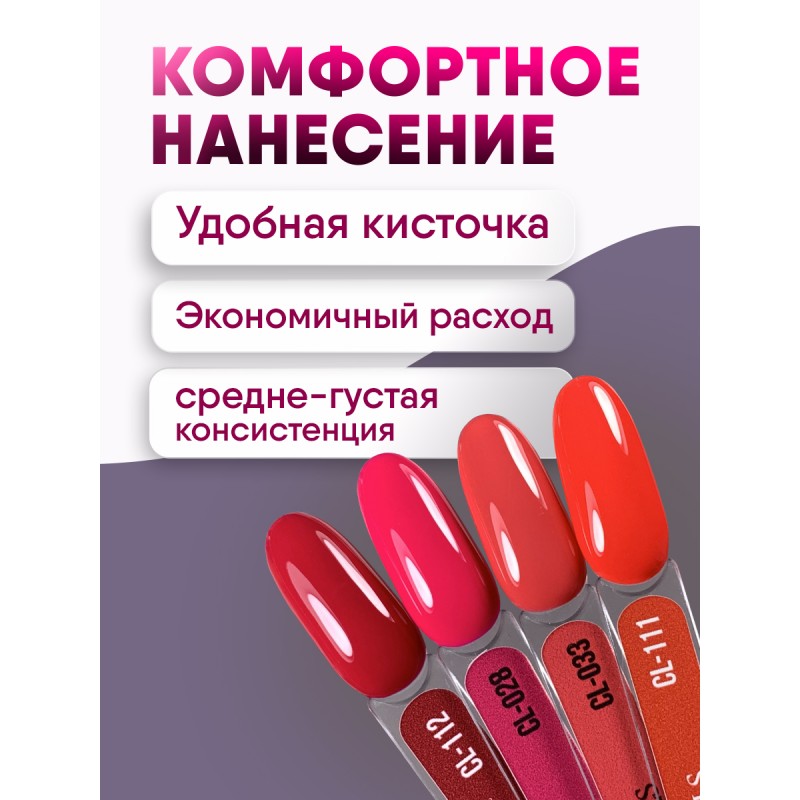 Высокопигментированный густой гель-лак, наносятся в один слой. Цвет не полосит при нанесении и не съеживается во время сушки. Таким гель-лаком работать одно удовольствие.